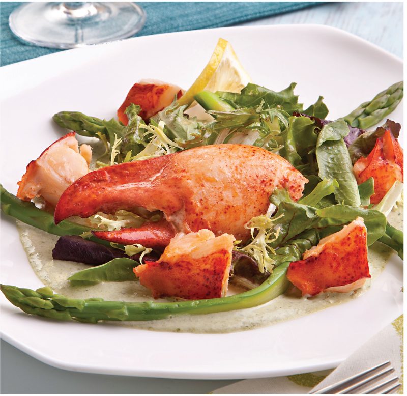 * Start off with a beautiful Lobster Salad with Asparagus Herb Mayonnaise. It’s easier than you think to season your favorite mayonnaise and use it to top steamed lobster, and it’s an impressive way to start a meal.