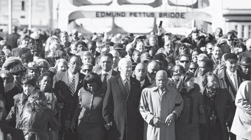 The vice president joined more than two dozen members of Congress, civil rights leaders, and some of the original marchers for the annual commemoration of Bloody Sunday. Before marching across the bridge, the vice president was joined on a stage at the foot of the bridge by Rep. John Lewis (D-GA), an Alabama native who was beaten trying to cross the bridge, and Rep. Terri Sewell, a Selma native who became the first black woman elected to Congress from Alabama in 2010.